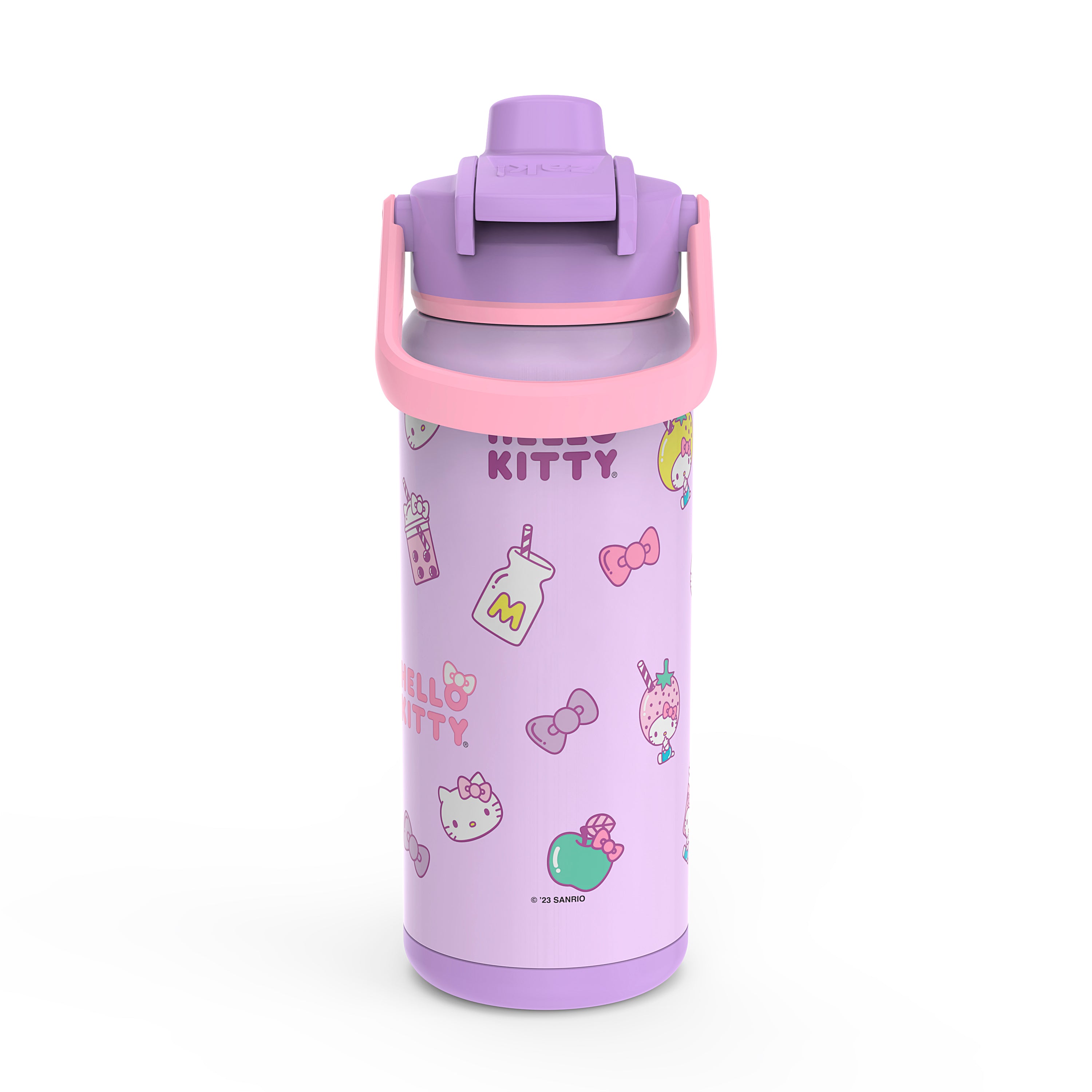 When your cool kid needs to stay cool too. the Hello Kitty 20oz Stainless Steel Beacon Bottle from zak! is ready and willing to rise to the occasion. As fun as it is functional. these bottles are packed with practical features to keep your kid’s life running smooth. The wide carrying handle lets them grab and go while the non-skid base keeps it from sliding off desks or tables. And even though older kids are too tough to be bothered with germs. the pop-up lid will keep the drinking spout as clean as possible. The double-wall insulation has the added benefit of keeping drinks cold for hours. And since we all know that water bottles have become a necessary statement of style for generation-cool. we went to great lengths to ensure that the outside of the Beacon is just as chill as the inside.